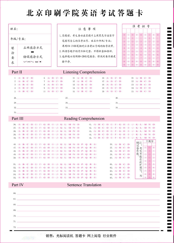 產(chǎn)品標(biāo)題:北京印刷學(xué)院英語(yǔ)考試答題卡