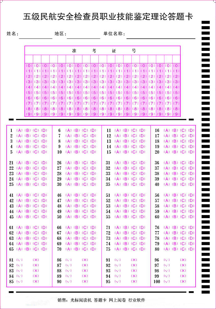 產(chǎn)品標題:職業(yè)技能鑒定理論答題卡