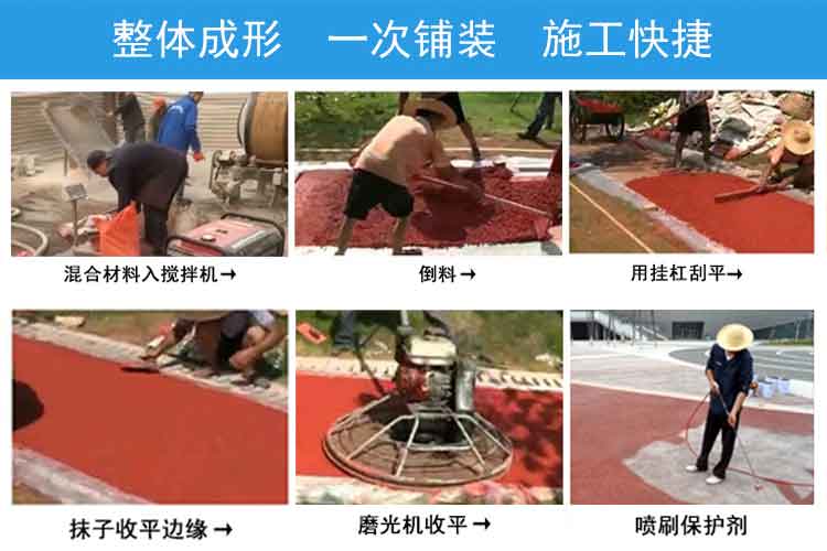 2.澆筑:透水地坪在澆筑之前,路基必須先用水濕潤。否則透水地坪快速失水份會減弱骨料間的粘結(jié)強(qiáng)度。由于透水地坪拌合物比較干硬,將拌和好的透水地坪和好的透水地坪材料鋪在路基上鋪平即可。