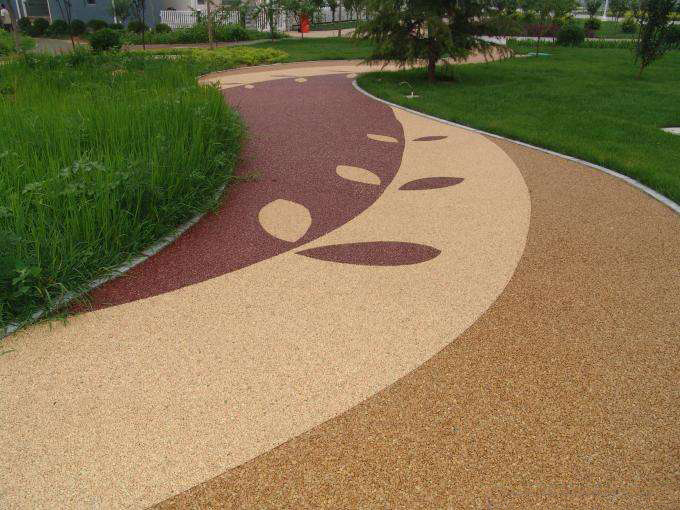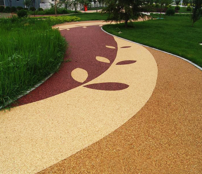 露骨料透水混凝土是以膠結(jié)料為粘合材料,將一定粒級的骨料粘合在一起形成多孔型鋪面,它以透水混凝土為基層,構(gòu)成的一種透水鋪裝地面。其特點是運用天然石頭自身的色彩、形狀以及潤濕的光澤效果,使面層骨料實現(xiàn)自然鋪面效果。