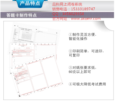 ●答題卡印刷方式可以是膠印、速印、靜電復(fù)印或激光打印;答題卡可以由使用單位自行設(shè)計(jì)、自行印刷;除了能識(shí)別自己格式的答題卡外也必須能掃描識(shí)別多種來(lái)源多種格式的網(wǎng)上閱卷答題卡。