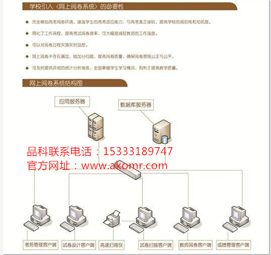 產品參數品科網系統采用B/S架構,系統安裝部署非常方便對評卷教師屏蔽了答卷上的,閱卷過程及閱卷結果客觀公正采用多種評分方式:可以鍵盤給分、鼠標給分、界面直接打分等方式支持多種評卷模式:對任 意科目、任 意題目,按任 意比例進行單評、雙評或多評設置支持對答卷內容批注、放大、縮小、旋轉、瀏覽、擦除、復原等功能,并且類似傳統手工閱卷的卷面評卷模式具備工作量統計功能:有試卷工作進度(科目組長查看),題目工作進度(題目組長查看),小組工作進度(小組長查看),每日評卷量,平均日評卷量(預測剩余工作時間),工作量統計,評卷時間統計。具備完善的評卷質量統計功能,對每個評卷教師的平均分、標準差、給分分布實時監控。閱卷過程中可提交典型錯誤、優 秀試題等標志試卷。標志試卷可網絡展示、可批量下載、方便針對性講評。多個閱卷教師的標志試卷可資源共享。廠家供應網上閱卷系統,學校首次使用時將進行免費,免費上門安裝調試。軟件免費升級。成績統計分析功能客觀題以及主觀題評閱完成后,軟件系統自動合成成績,包括單科主、客觀題總分以及全部科目總分合成,軟件系統強大的分析統計功能,可實現各種需求的報表生成、輸出,并可將多次考試數據進行對比,給出學生各科歷次考試成績的對比變化曲線。