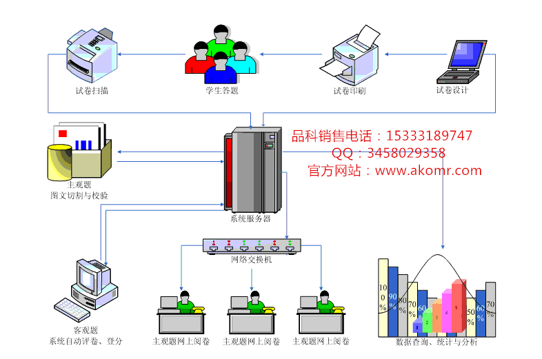 網上閱卷系統是指以計算機網絡技術及電子掃描與識別技術為依托,實現客觀題自動閱卷,主觀題網上評卷及成績數據處理的計算機軟件系統。
