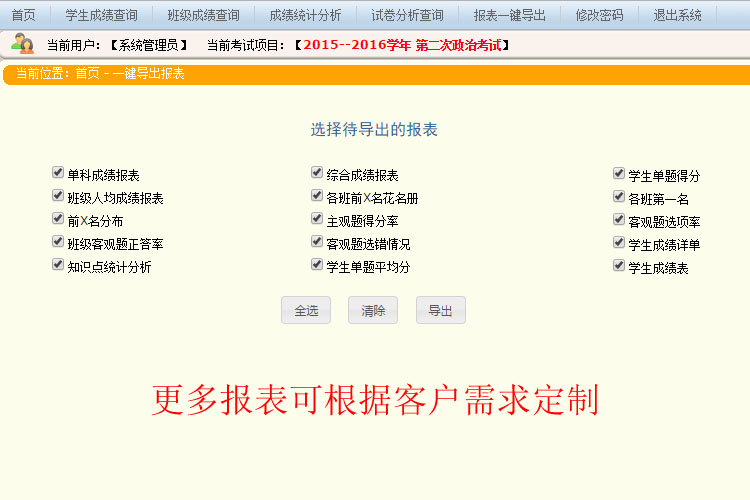 設置具有不同操作權限的用戶,實現對主觀題部分的評閱,自動題卡上的學生信息,并通過設置不同用戶權限,層層監控把關,保證了閱卷過程中公平、公正的原則。