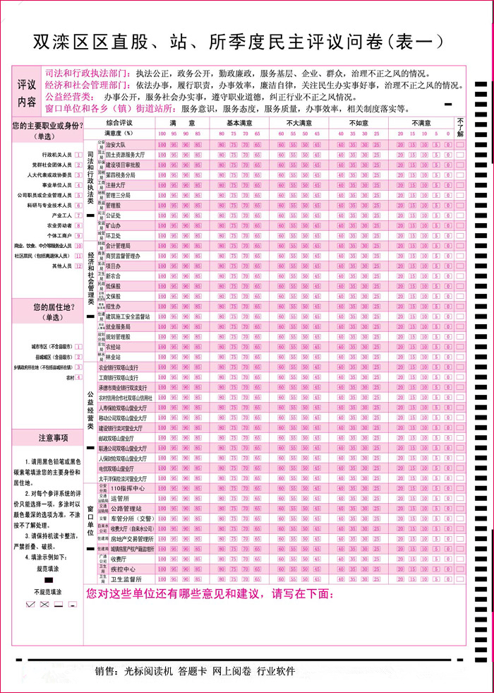 品科科技有限公司主要經(jīng)營考試閱卷機(jī),光標(biāo)閱讀機(jī),光標(biāo)閱卷機(jī),考試讀卡機(jī),光標(biāo)閱讀器,從生產(chǎn)到銷售,到配套光標(biāo)閱讀機(jī)軟件,機(jī)讀卡印制,一條龍服務(wù),極大地為客戶提供方便。