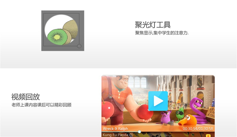 集成了電子白板、平板電視、電腦、投影機、投影幕布、音響、廣告機、WINI等多種功能為一體的互動教學機,從而增強了教學互動性,使教學更簡潔、更簡易、更高效。