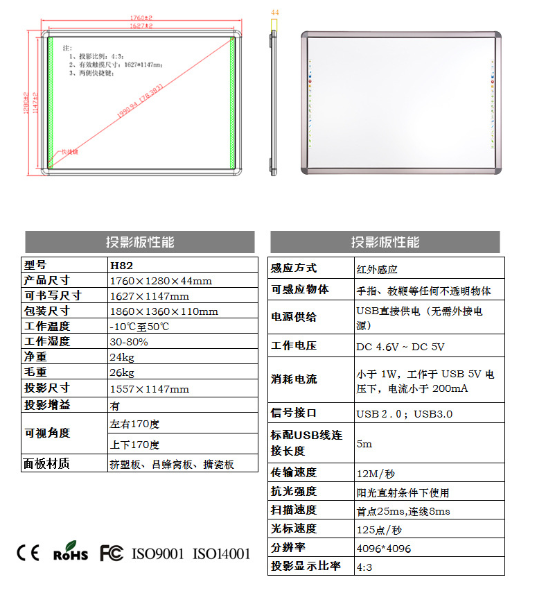 108寸紅外電子白板